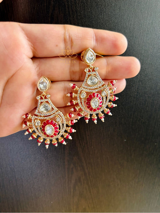 Bold Red Kundan Drops