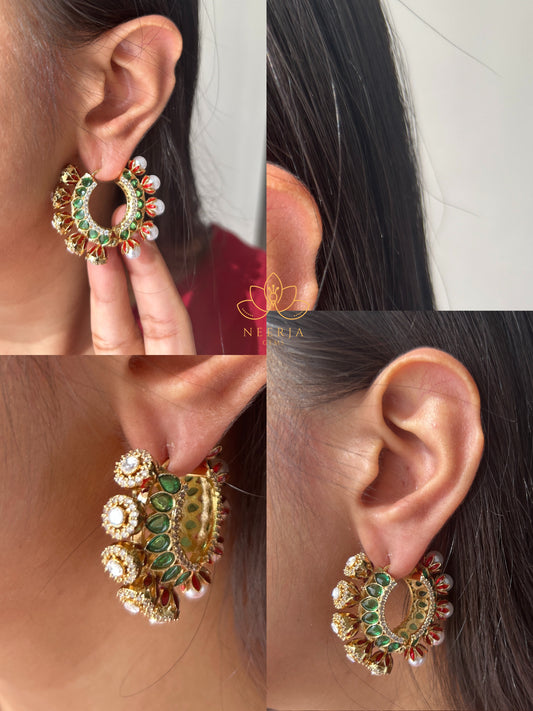 Mughal Crescent Polki Hoops
