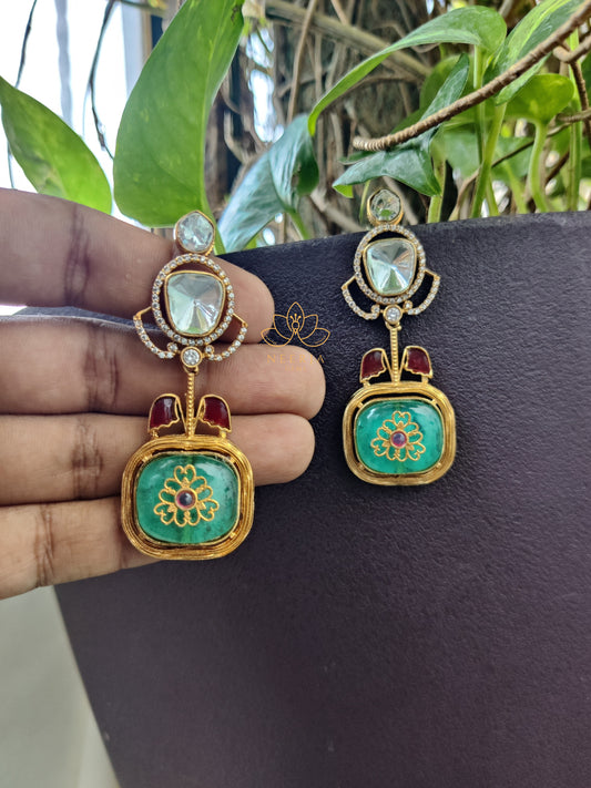 Square Polki Meenakari Earrings