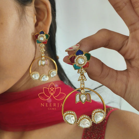 Traditional Meenakari Pearl Drop Kundan Necklace Set