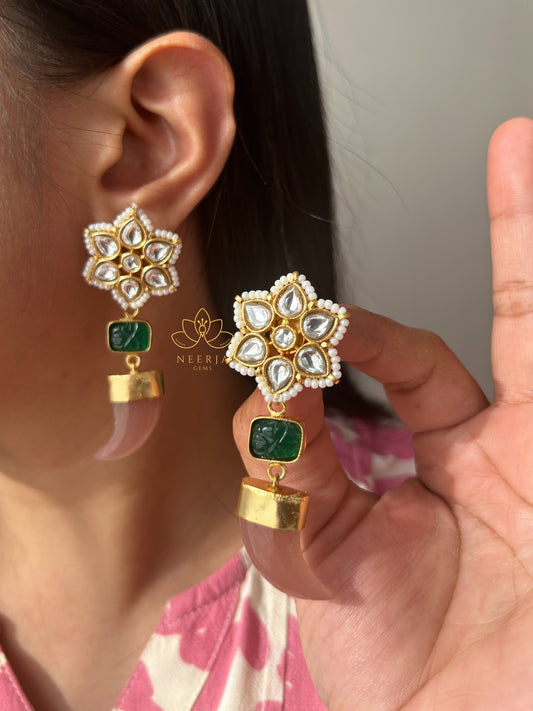 Celestial Polki Crescent Studs