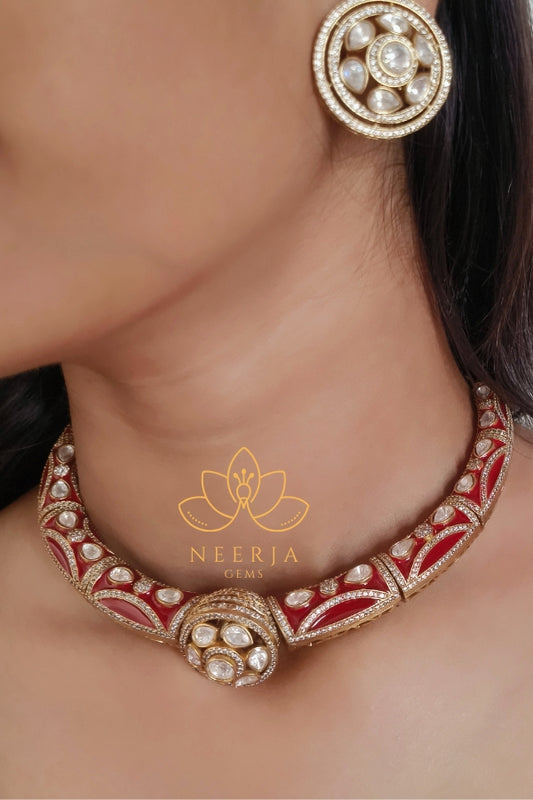 Elegant Ruby & Pearl Bridal Kundan Necklace Set